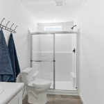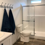 - 1-Piece Fiberglass Shower w/ Tempered Glass Enclosure – Primary Bath